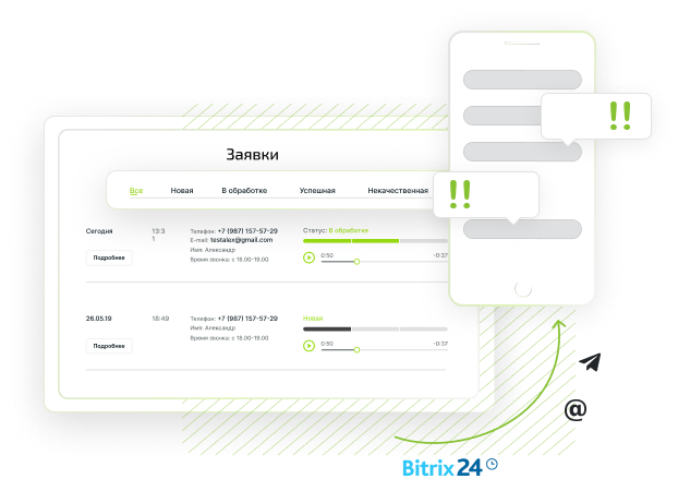 Система позволяет обрабатывать и сортировать заявки пользователей с любых форм и сайтов. Они приходят в CRM в реальном времени, а назначенные операторы работают с ними, меняя статус обращений и ведя ветку комментариев по каждому клиенту