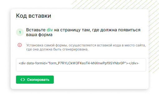 После этого форма появится на сайте и все заявки будут приходить во внутреннюю CRM и храниться в вашем личном кабинете