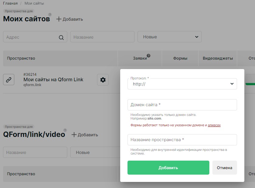 Зарегистрируйтесь в QForm и добавьте сайт, на котором будет форма