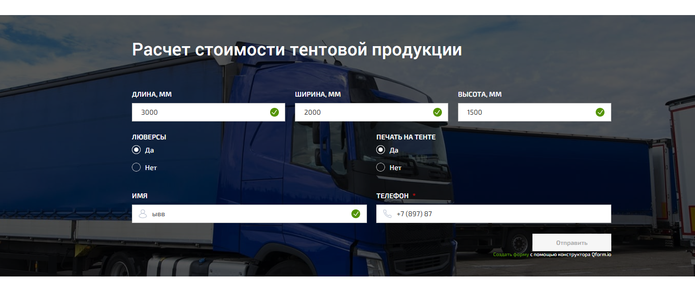 Это не онлайн-калькулятор, а простая форма, где клиент выбирает нужные характеристики: размеры, тип материала, дополнительные опции - и отправляет их менеджеру для точного расчёта.