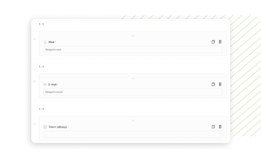 Создавайте самые разные формы обратной связи: всплывающие, многостраничные, без сайта и другие. Размещайте нужные поля с удобным drag-n-drop конструктором и выбирайте дизайн. Добавьте на страницу за пару минут или делитесь ссылкой и собирайте обращения в CRM.