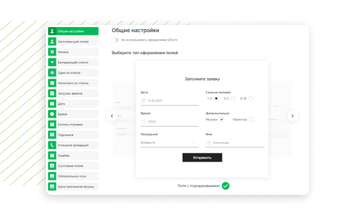 Настройте дизайн элементов формы, её ширину, валидацию полей, антикапчу и прочее
