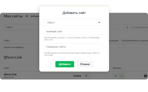 Зарегистрируйтесь на QForm и добавьте свой сайт