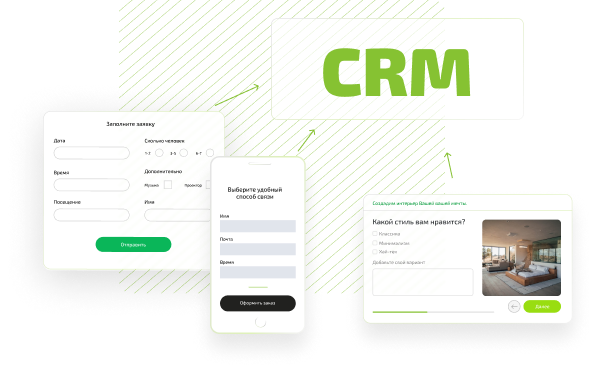 QForm интегрируется с ключевыми CRM, сервисами рассылок, мессенджерами. Это упрощает работу со сделками, позволяет вести онлайн-запись, делать рассылки писем и SMS по собранной базе данных