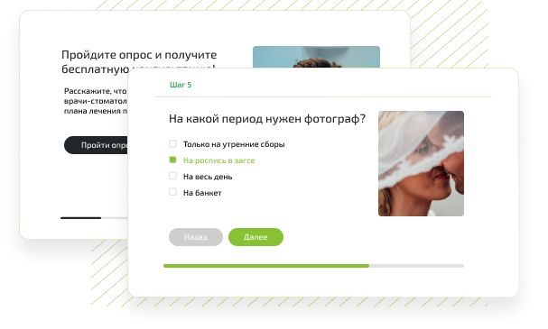 Создавайте маркетинговые квизы без навыков разработки. Простой и мощный сервис поможет за несколько минут построить интерактивный опрос, чтобы собирать данные для вашего бизнеса