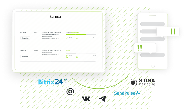 Подключите сервисы SMS и email-рассылок, чтобы автоматически добавлять номера и email-адреса к существующим базам рассылок, не прерывая взаимодействие с клиентом ни на минуту