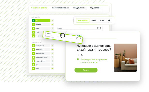 Создавайте, редактируйте и форматируйте вид и содержимое квиза, чтобы он идеально соответствовал целям вашего сайта