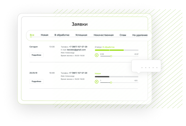 Удобная встроенная CRM-система упростит работу с обращениями. Меняйте статусы и ведите историю комментариев по каждому клиенту