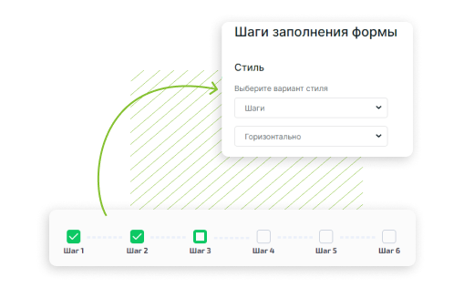Перейдите в режим конструктора, добавьте и настройте необходимые типы полей. Чтобы получить пошаговую форму, создавайте для каждого шага отдельный раздел