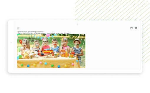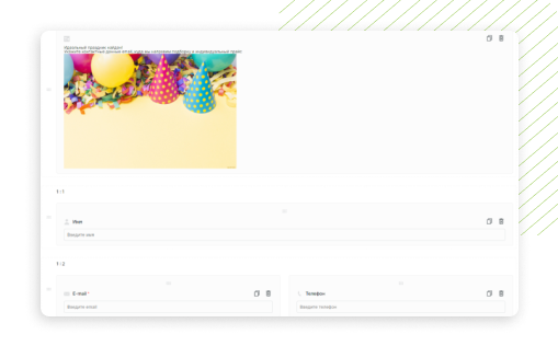 Разместите «Текстовый блок». Поле поддерживает теги HTML, используя которые можно добавлять элементы (заголовки, картинки, GIF) и интересно оформить начало квиза