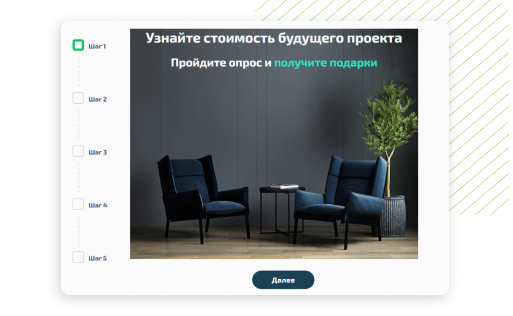 Данный квиз позволяет точно узнать, чего хочет клиент. Это повышает доверие, так как демонстрирует индивидуальный подход к каждому клиенту.