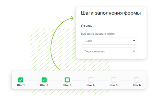 Перейдите в режим конструктора, добавьте и настройте необходимое количество полей. Чтобы получить пошаговую форму, создавайте для каждого шага отдельный раздел