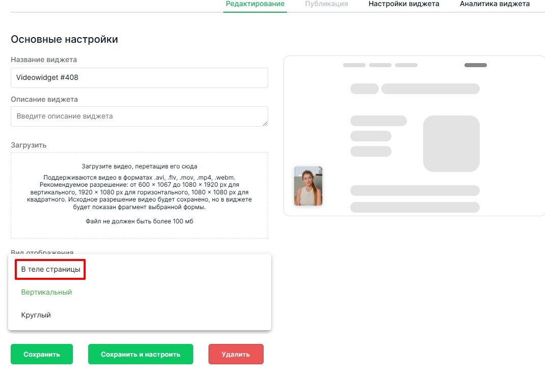 Нажмите Сохранить или Сохранить и настроить , если планируете дальше работать с видеовиджетом.