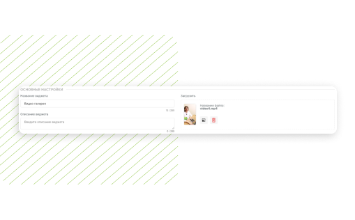 Настройка виджета выглядит так: Назовите виджет и прикрепите видеофайл в поле загрузки. При необходимости добавьте описание виджета